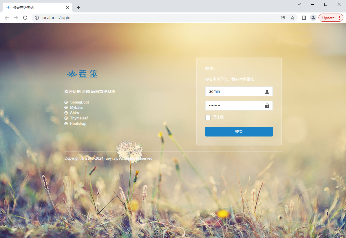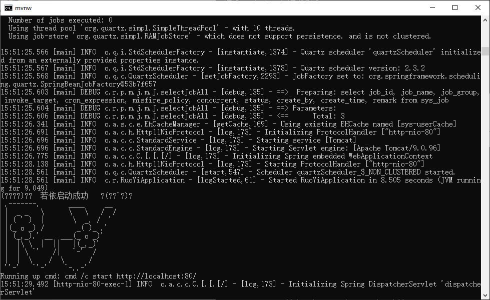顺利的话就能看到“若依启动成功”: