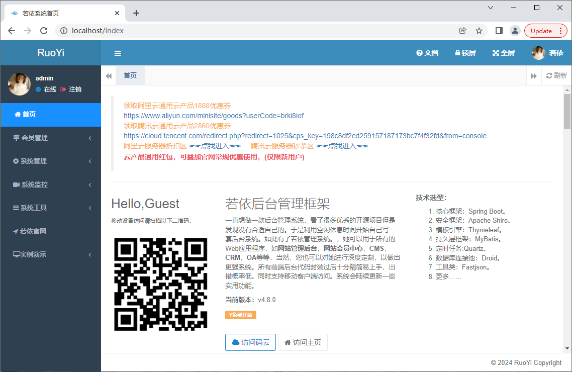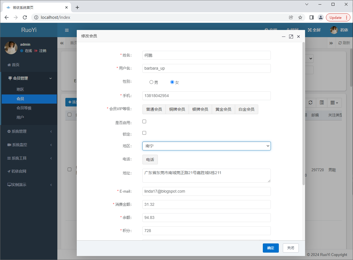 点登录,进入首页,会看到菜单中添加了我们的“会员管理”节点: