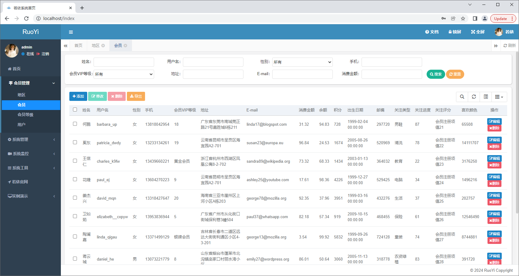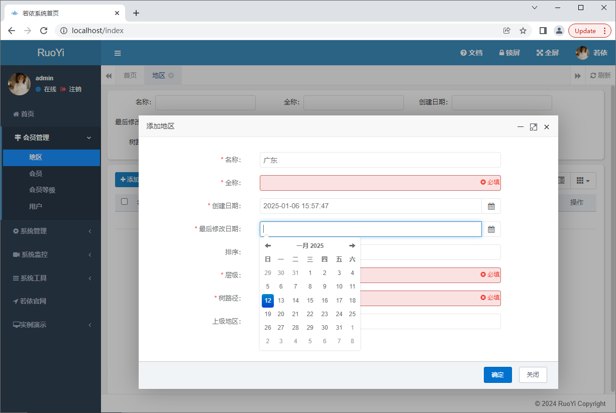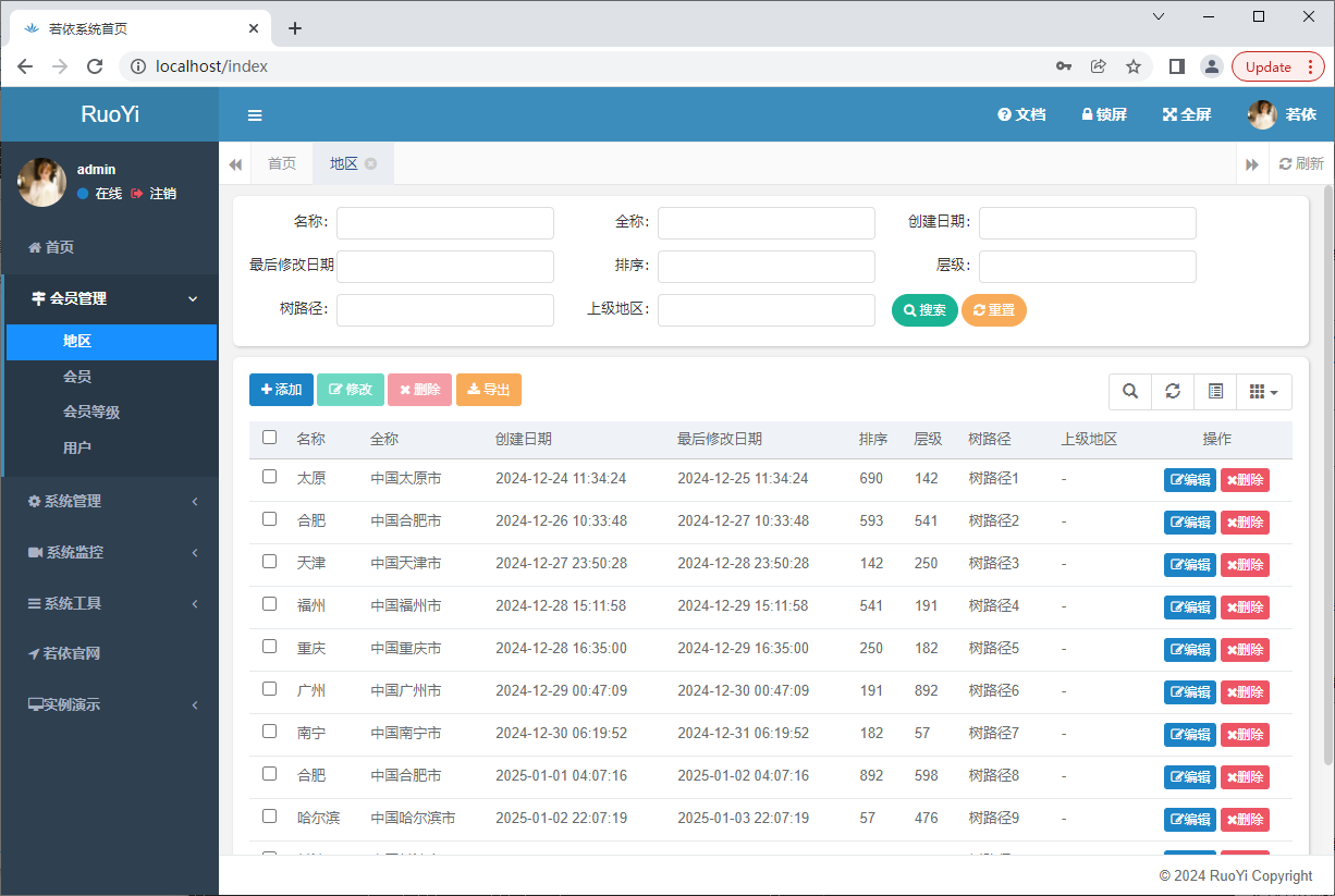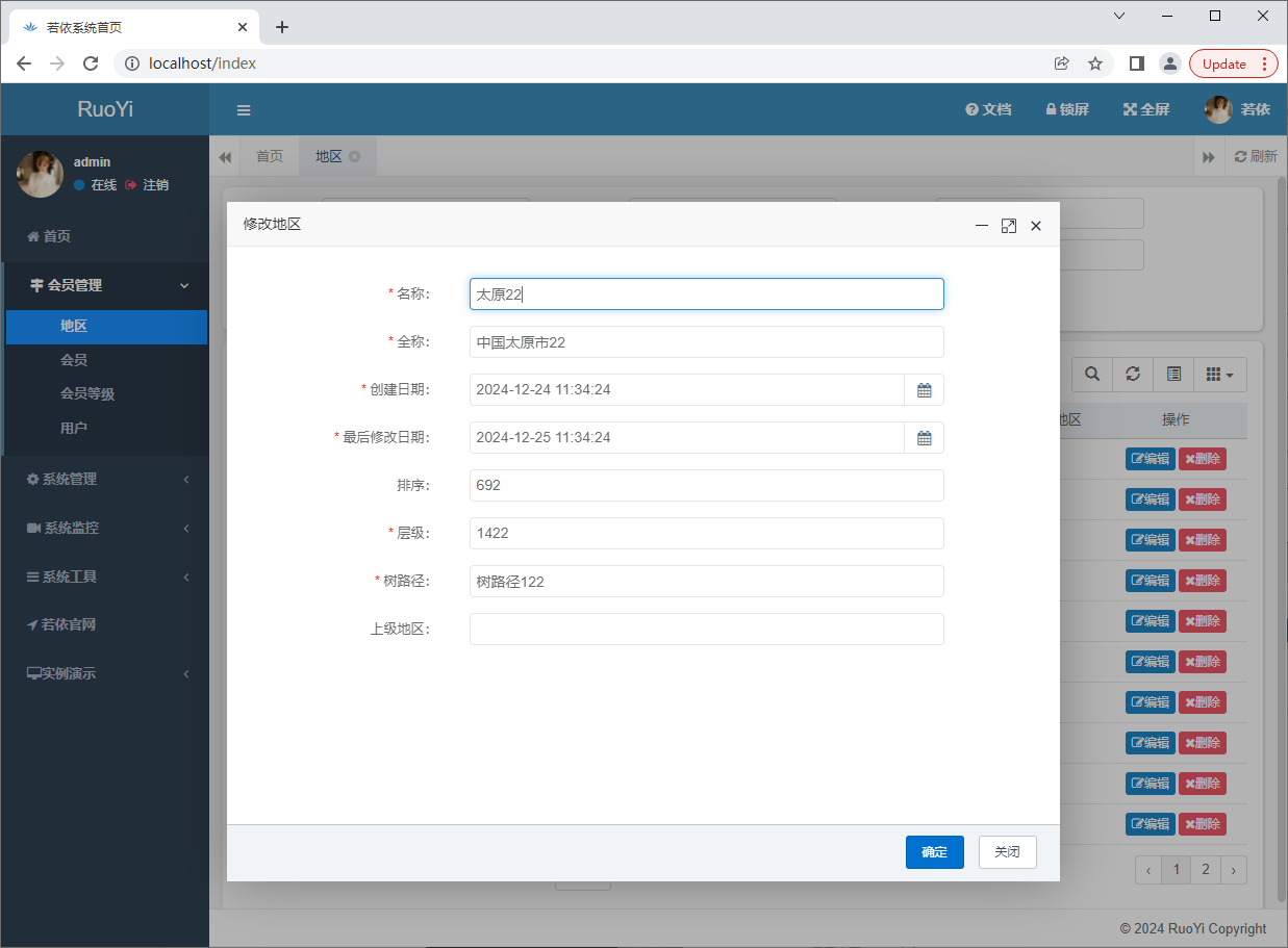 地区增删改查一切正常: